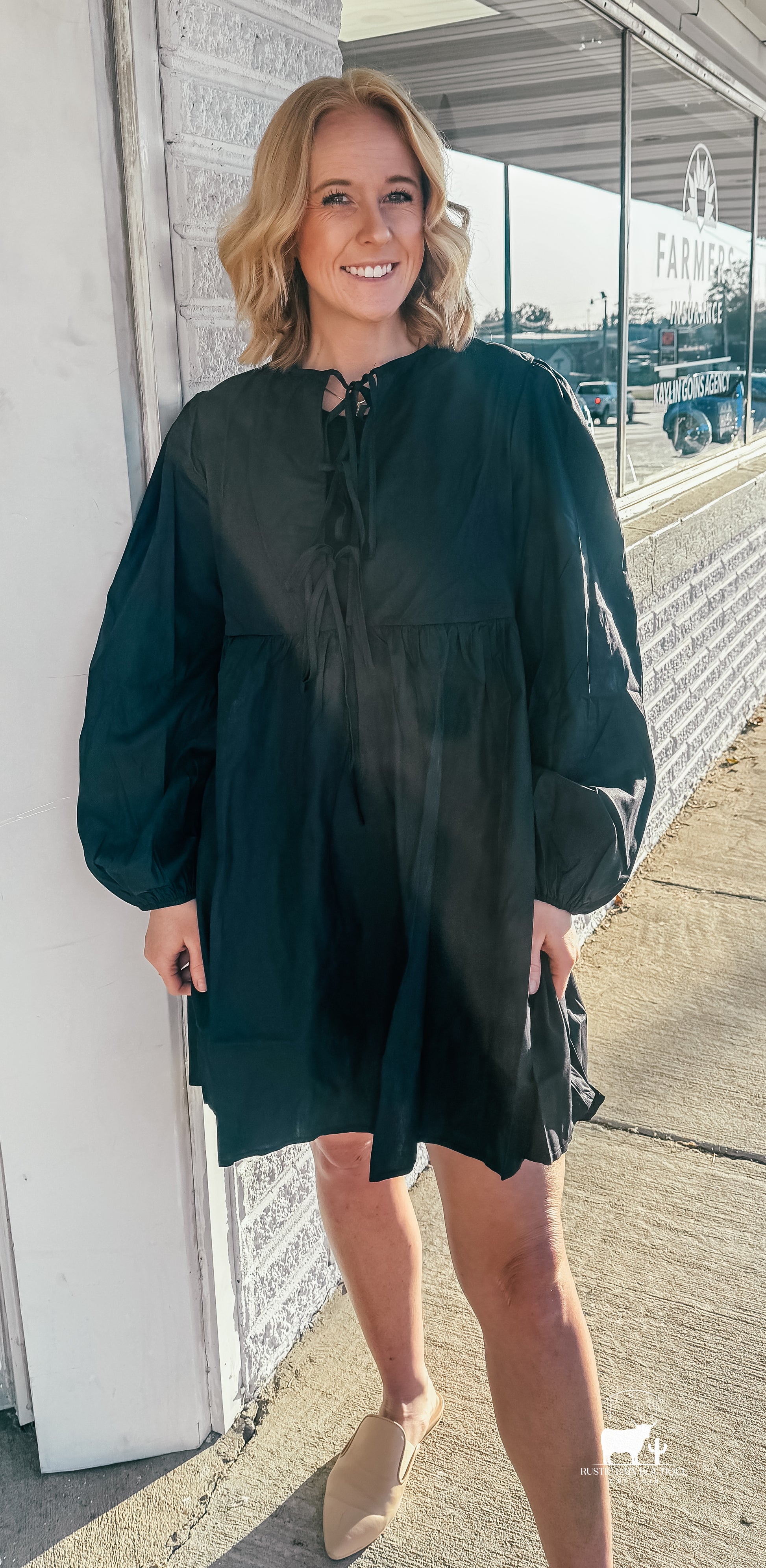 Double Take Christmas Front Tied Long Sleeve Mini Dress