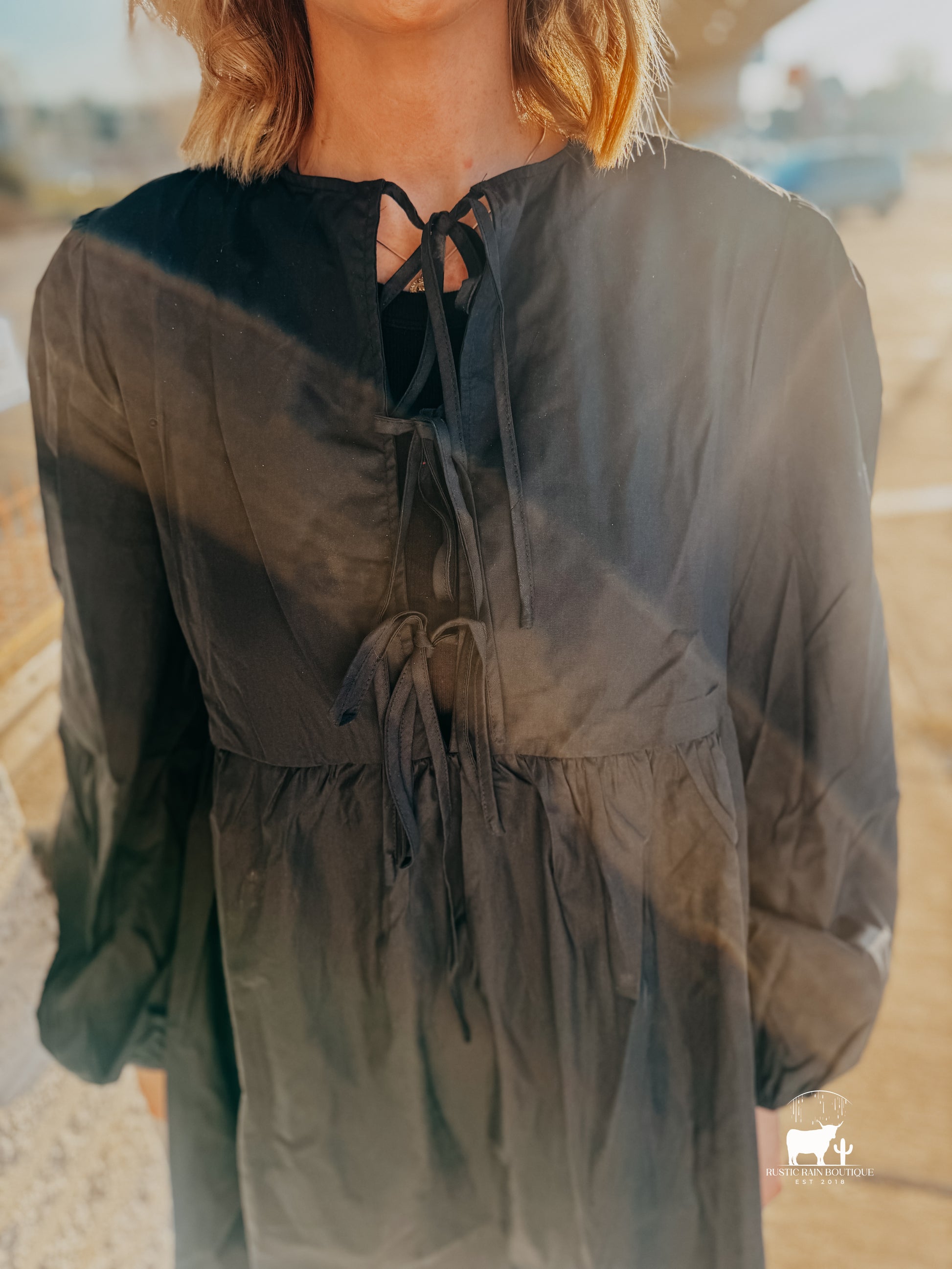 - Features: Tied, Ruched