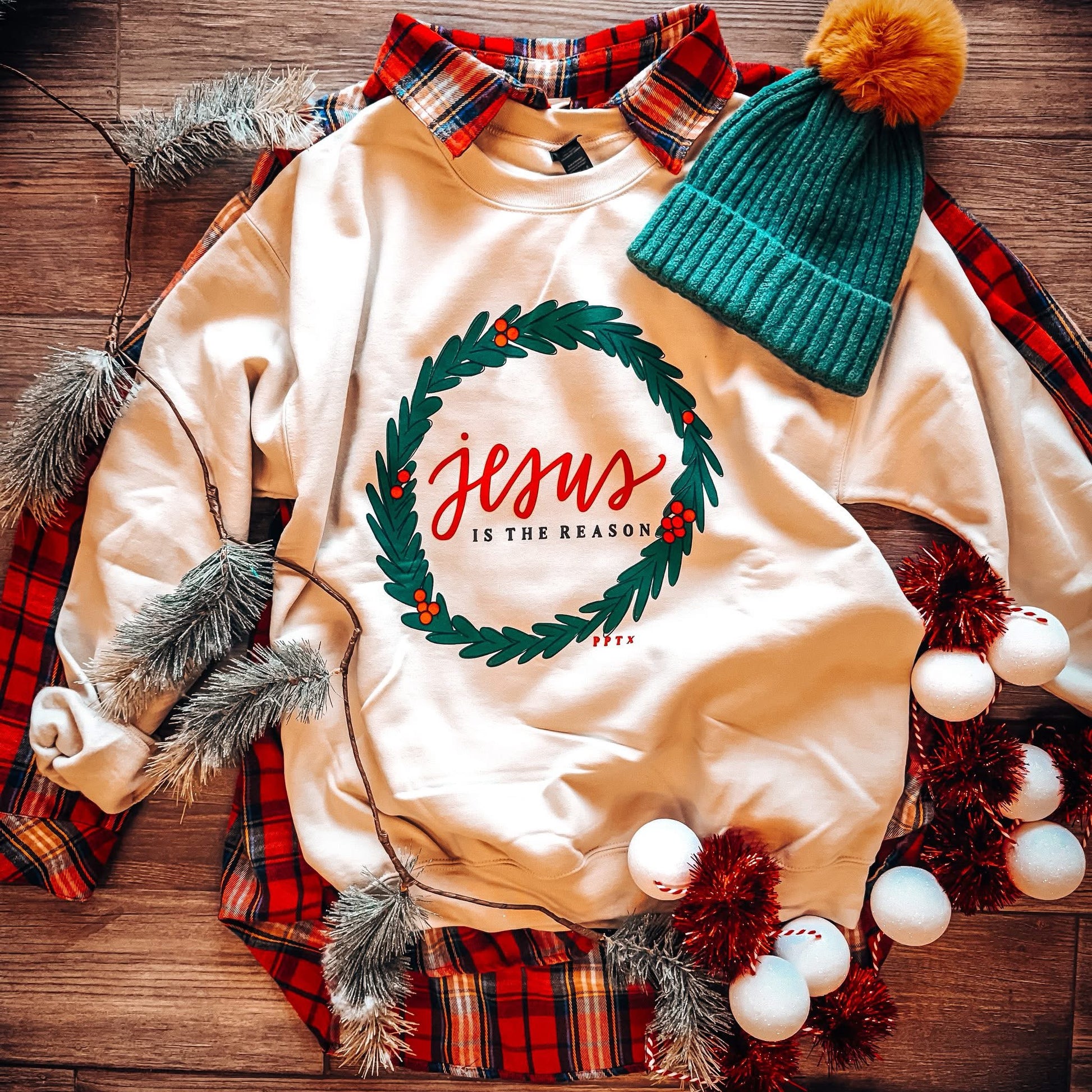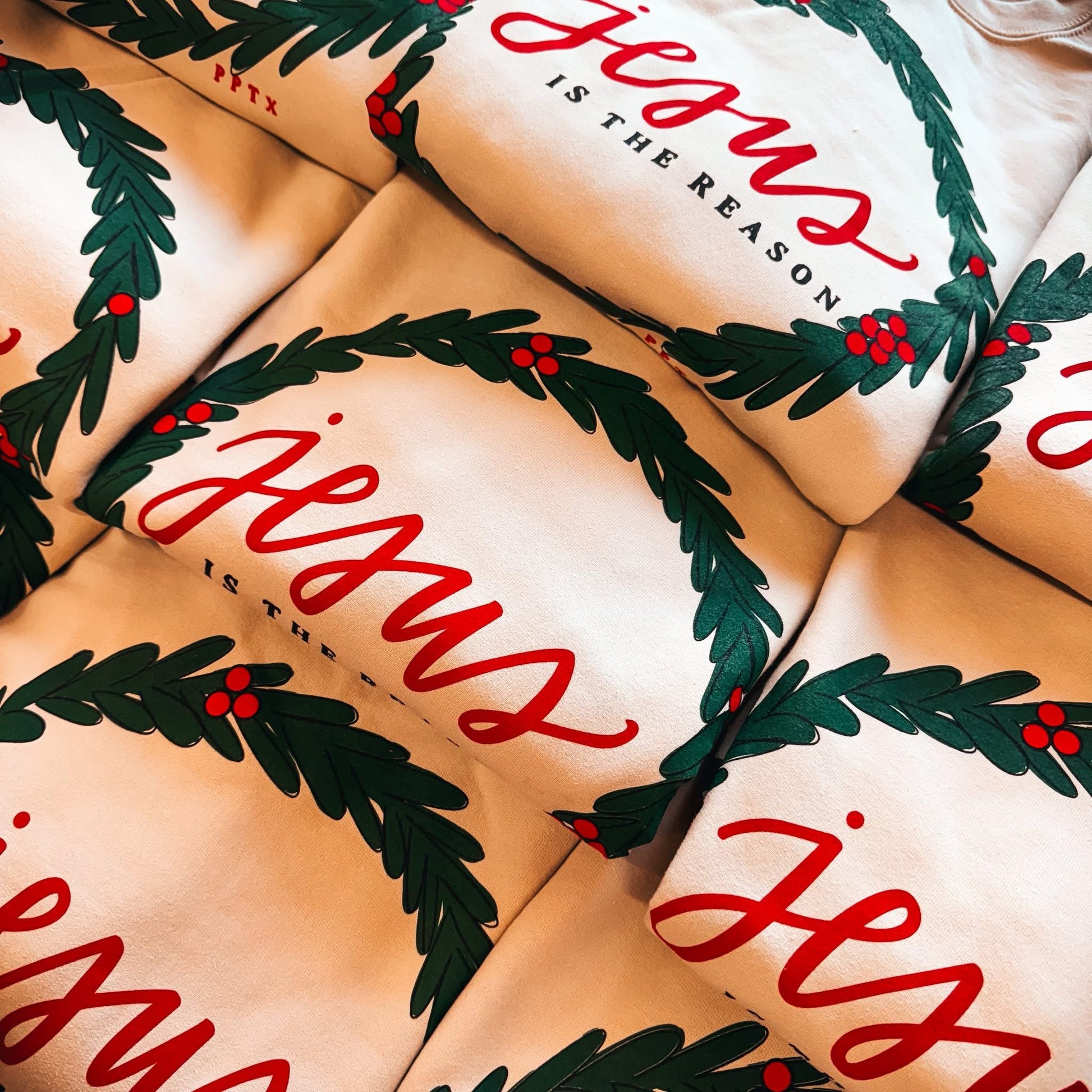 This cozy crewneck sweatshirt is a perfect way to show your love for Jesus! Featuring a festive wreath design, it will keep you warm and stylish during the holiday season and beyond. Let everyone know that Jesus is truly the reason for the season with this comfortable and playful sweatshirt.